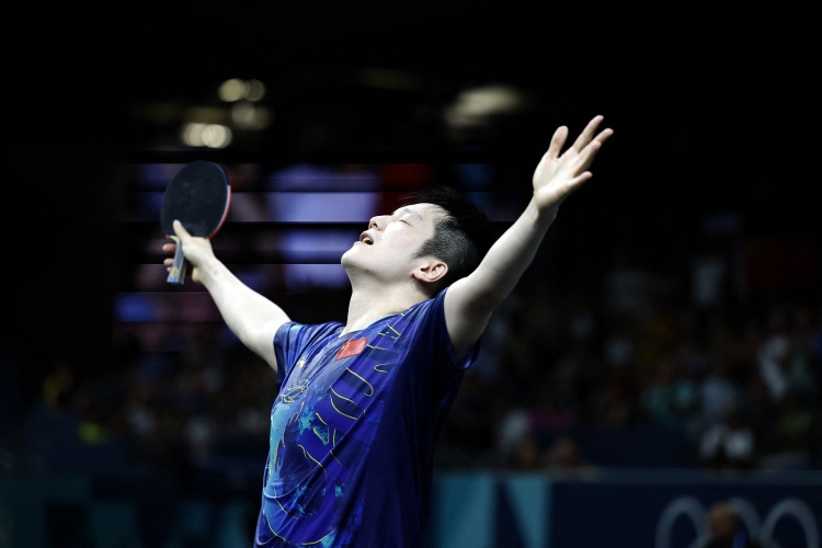 半决赛,樊振东4-0战胜F-勒布伦,模仿C罗庆祝动作
